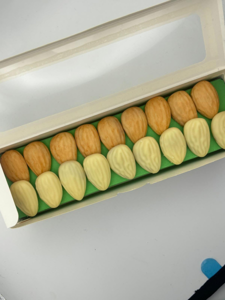 Chocolat Blanc Valrhona, Beurre d Amandes torréfiées, Miel de Nice.