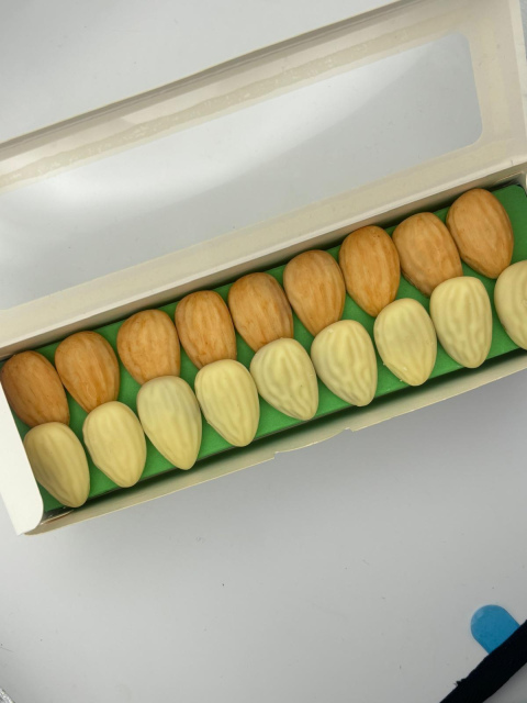 chocolat blanc satiné et fourrage intense d amandes torréfié liées au miel d acacia.